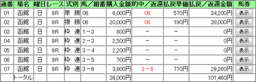 夏競馬が得意で毎年この時期は馬券に絡んでいる。
