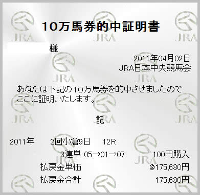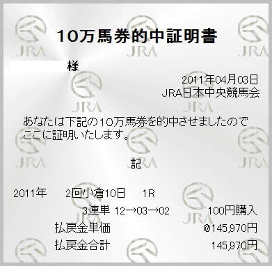 | とにかく万馬券を狙い撃ちする予想。的中率はイマイチもひとつ当たれば100万円以上の払い戻しも期待できる。近いうちに大儲けできそう。 |